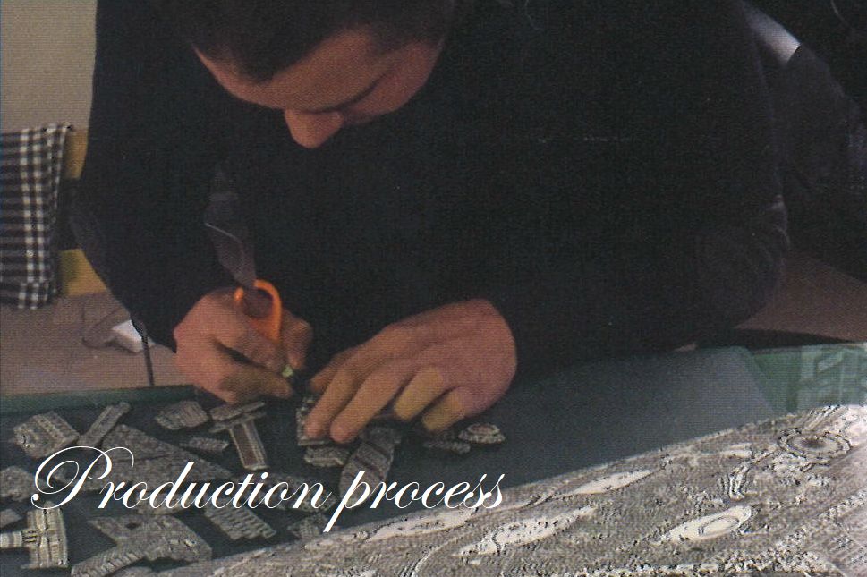 C描いた建物やモチーフに併せて、繊細な作業の出来る特殊なカッターを使ってシートをカットします。